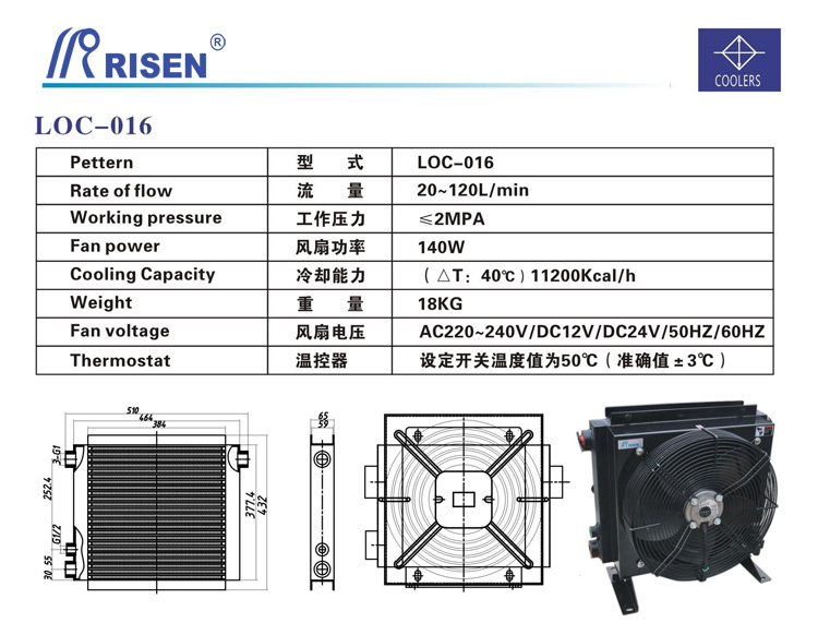 RISEN 日森 板式 風(fēng)冷卻器 兩側(cè)油口 風(fēng)冷 LOC-016 20-120L
