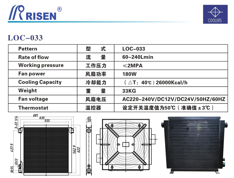 >> RISEN 日森 板式 風冷卻器 兩側(cè)油口 風冷 LOC-033 60-240L